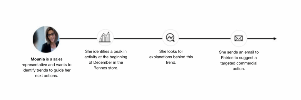 Initial question asked by Mouna: “Are there any monthly activity peaks in some of our stores?”